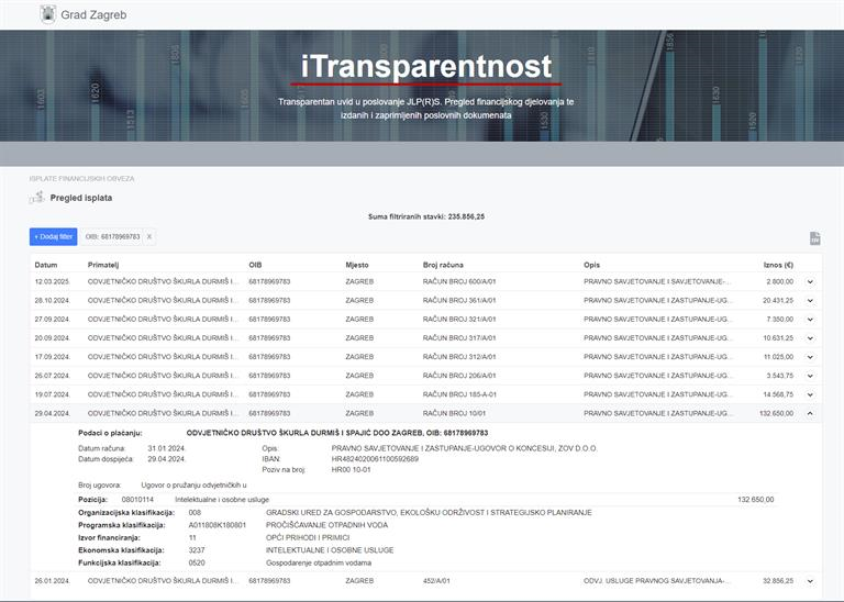 - iTransparentnost (Grad Zagreb) - „Službeni registar isplata Grada Zagreba“ - 3